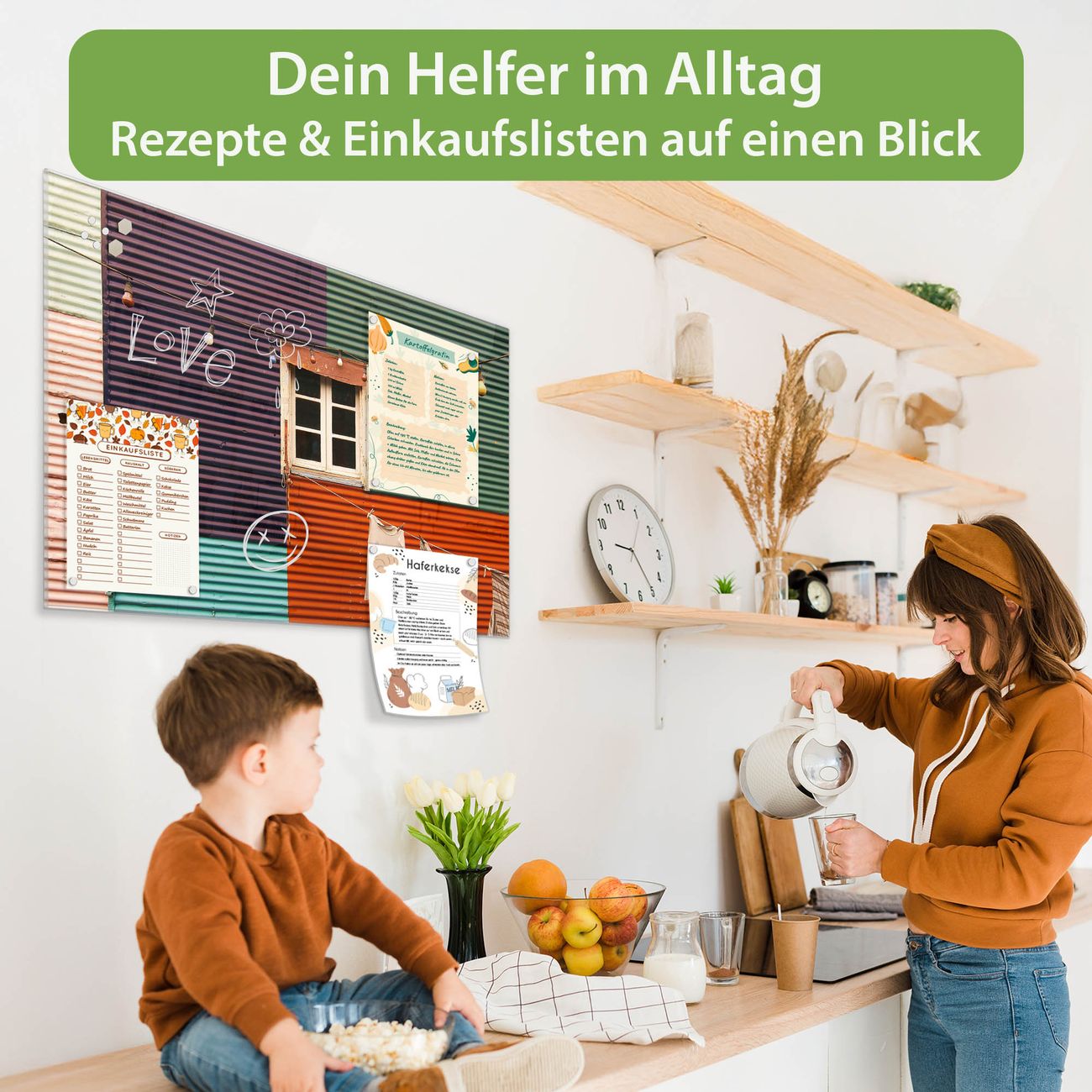 Auf der glatten Glasoberfläche lassen sich Termine, Rezepte oder Notizen ganz einfach mit Kreidestiften festhalten und rückstandslos entfernen. Starke Neodym-Magnete halten Ihre wichtigsten Erinnerungen sicher an Ort und Stelle. So entsteht Ihre ganz persönliche Ideenwand - jeden Tag neu.