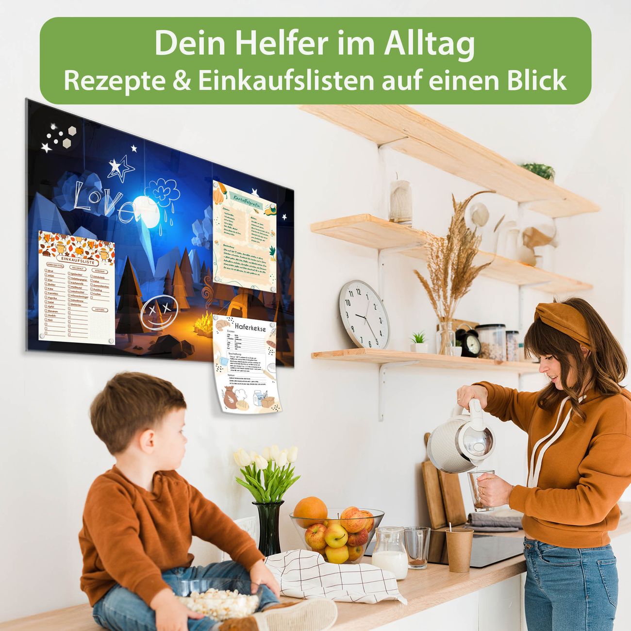 Ein Stück Design, das Ihren Alltag organisiert. Schreiben, heften, inspirieren - alles an einem Ort. Qualität, die man spürt. Montage leicht gemacht. Handwerk mit Herz - veredelt in Sachsen. Einzigartiges Design mit Motiv Motiv Camping 2 Beschreibbare Glasoberfläche, leicht zu reinigen Starke Magnetkraft durch Stahlrückwand Inklusive 4 Neodym-Magneten Flexible Montageoptionen Handveredelt in Sachsen - Qualität, die bleibt