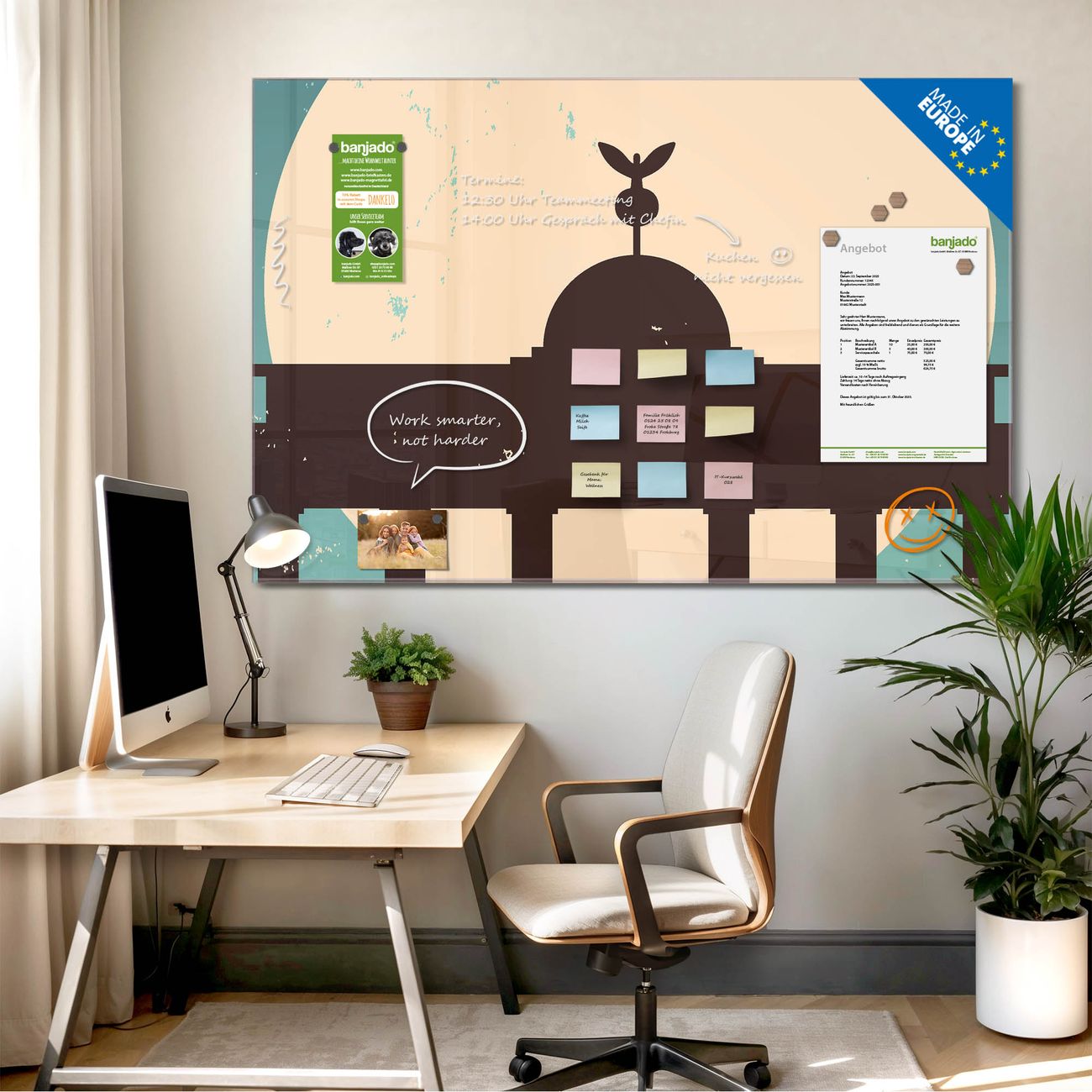 Die banjado Glas Magnettafel mit dem Motiv Motiv City Poster Berlin verbindet Funktionalität mit Stil. Sie ersetzt das Zettelchaos durch klare Strukturen und bringt dabei eine warme, natürliche Atmosphäre in Ihr Zuhause. Ob im Büro, in der Küche oder im Eingangsbereich - dieses Design-Board zieht Blicke an und sorgt für Ordnung mit Charakter.