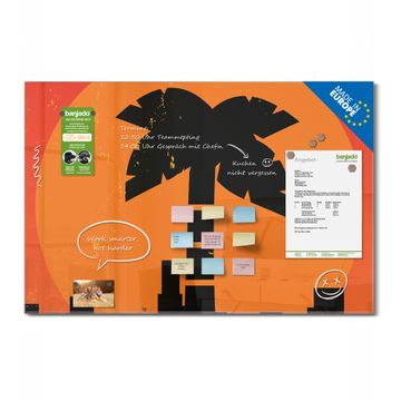 Auf der glatten Glasoberfläche lassen sich Termine, Rezepte oder Notizen ganz einfach mit Kreidestiften festhalten und rückstandslos entfernen. Starke Neodym-Magnete halten Ihre wichtigsten Erinnerungen sicher an Ort und Stelle. So entsteht Ihre ganz persönliche Ideenwand - jeden Tag neu.