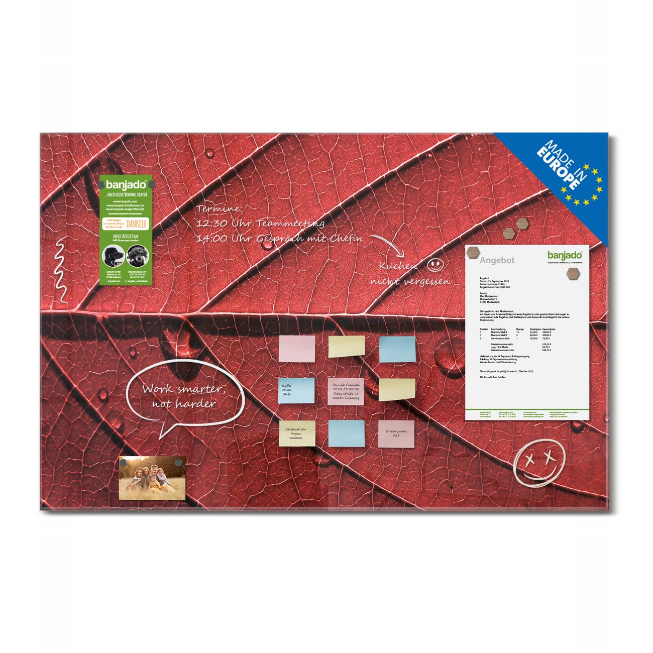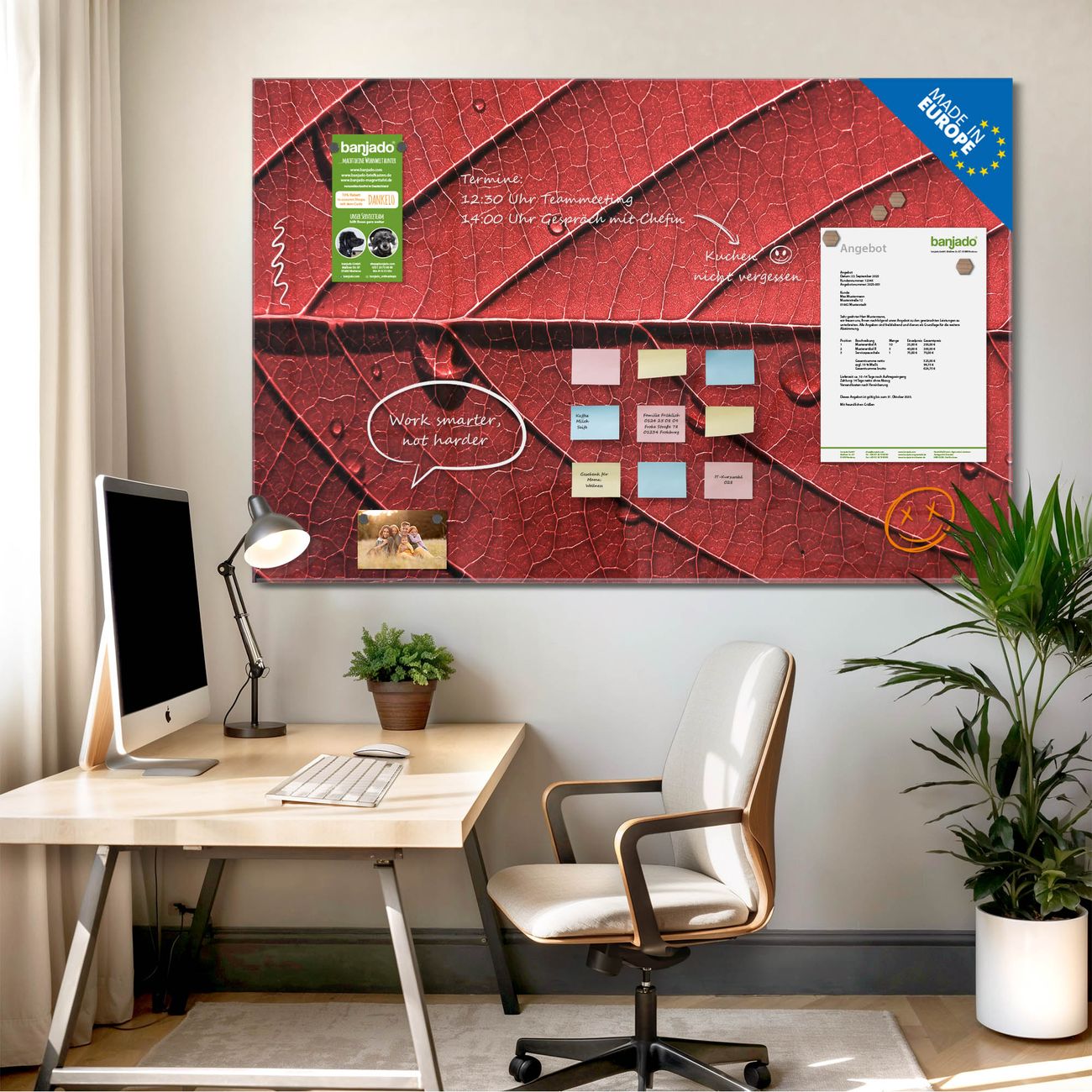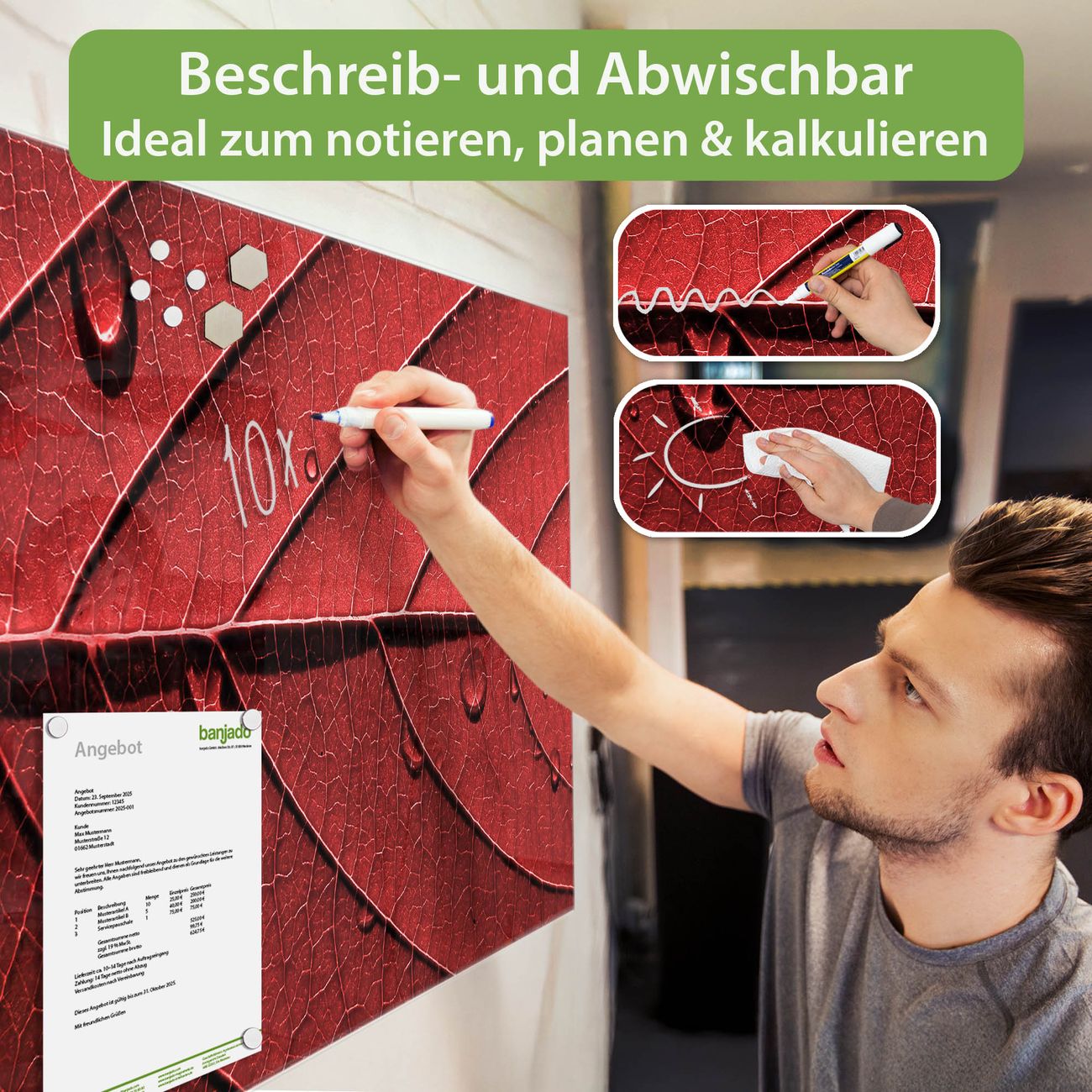 Die banjado Glas Magnettafel mit dem Motiv Motiv Detail Blatt verbindet Funktionalität mit Stil. Sie ersetzt das Zettelchaos durch klare Strukturen und bringt dabei eine warme, natürliche Atmosphäre in Ihr Zuhause. Ob im Büro, in der Küche oder im Eingangsbereich - dieses Design-Board zieht Blicke an und sorgt für Ordnung mit Charakter.