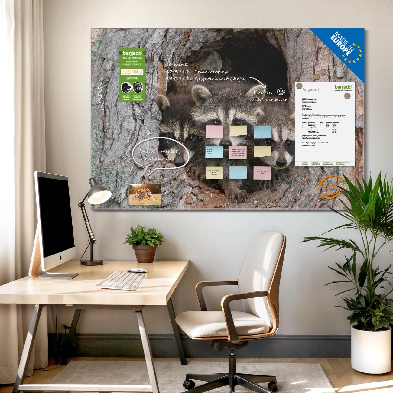 Jede Glas Magnettafel wird in unserer Werkstatt von Hand gefertigt und sorgfältig geprüft. So erhalten Sie ein echtes Qualitätsprodukt, das Funktion und Ästhetik perfekt vereint.?? Warum banjado?