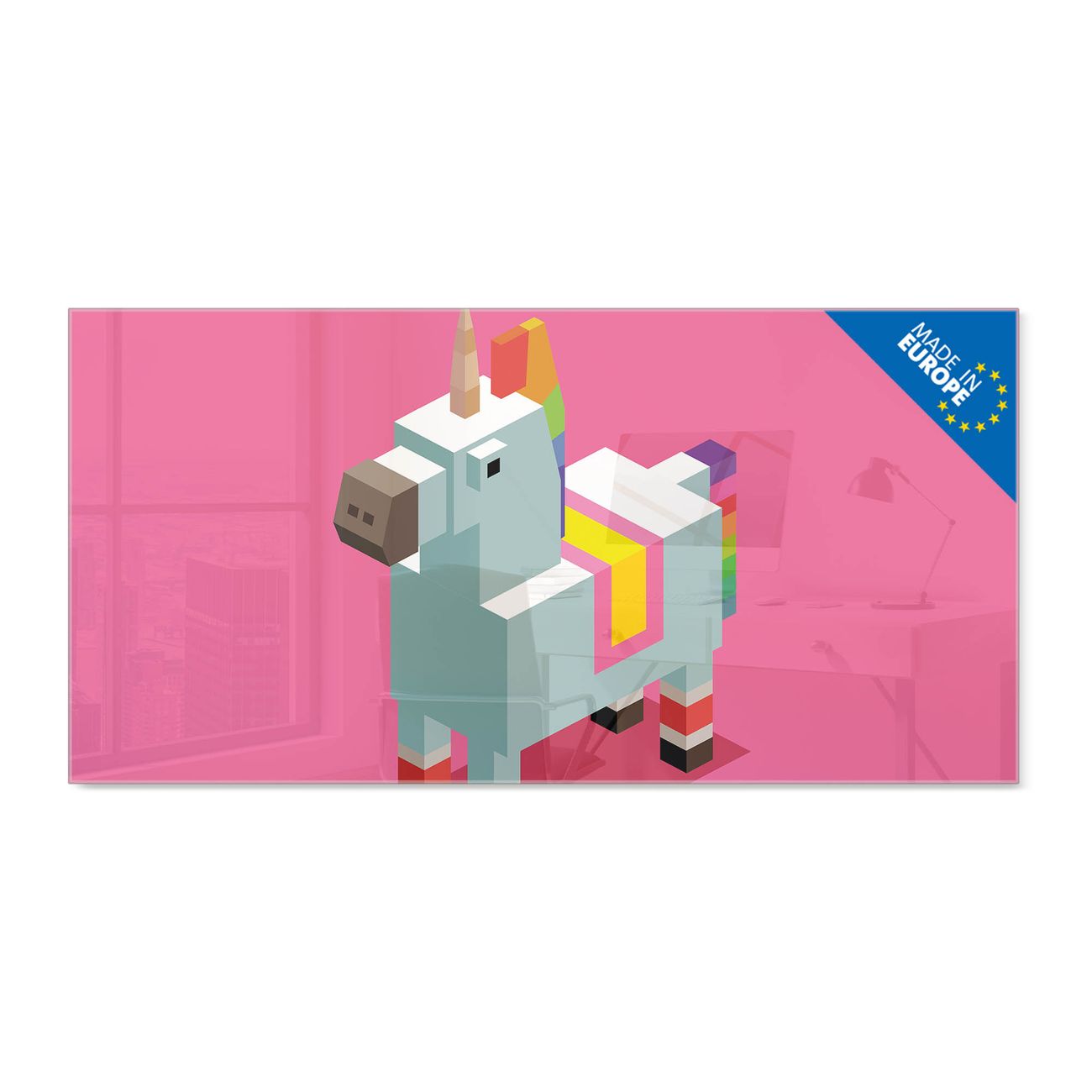 Glas Magnettafel im Querformat Motiv Einhorn Block