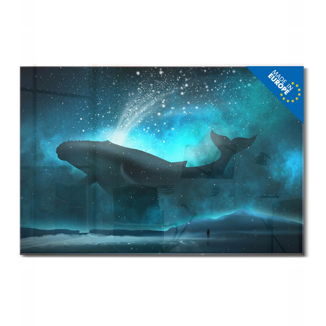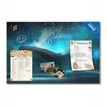 Glas Magnettafel im Querformat Motiv fliegender Wal