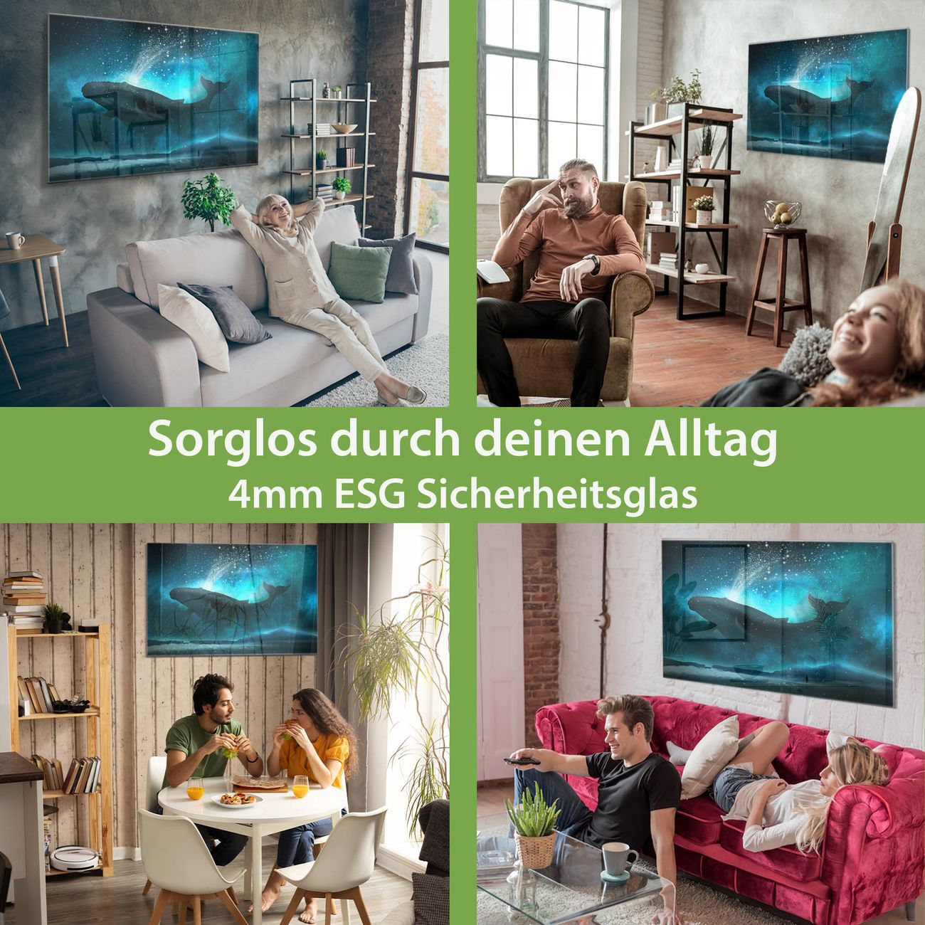 - Material: 4mm Sicherheitsglas mit Metallrückwand