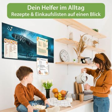 Ein Stück Design, das Ihren Alltag organisiert. Schreiben, heften, inspirieren - alles an einem Ort. Qualität, die man spürt. Montage leicht gemacht. Handwerk mit Herz - veredelt in Sachsen. Einzigartiges Design mit Motiv Motiv fliegender Wal Beschreibbare Glasoberfläche, leicht zu reinigen Starke Magnetkraft durch Stahlrückwand Inklusive 4 Neodym-Magneten Flexible Montageoptionen Handveredelt in Sachsen - Qualität, die bleibt