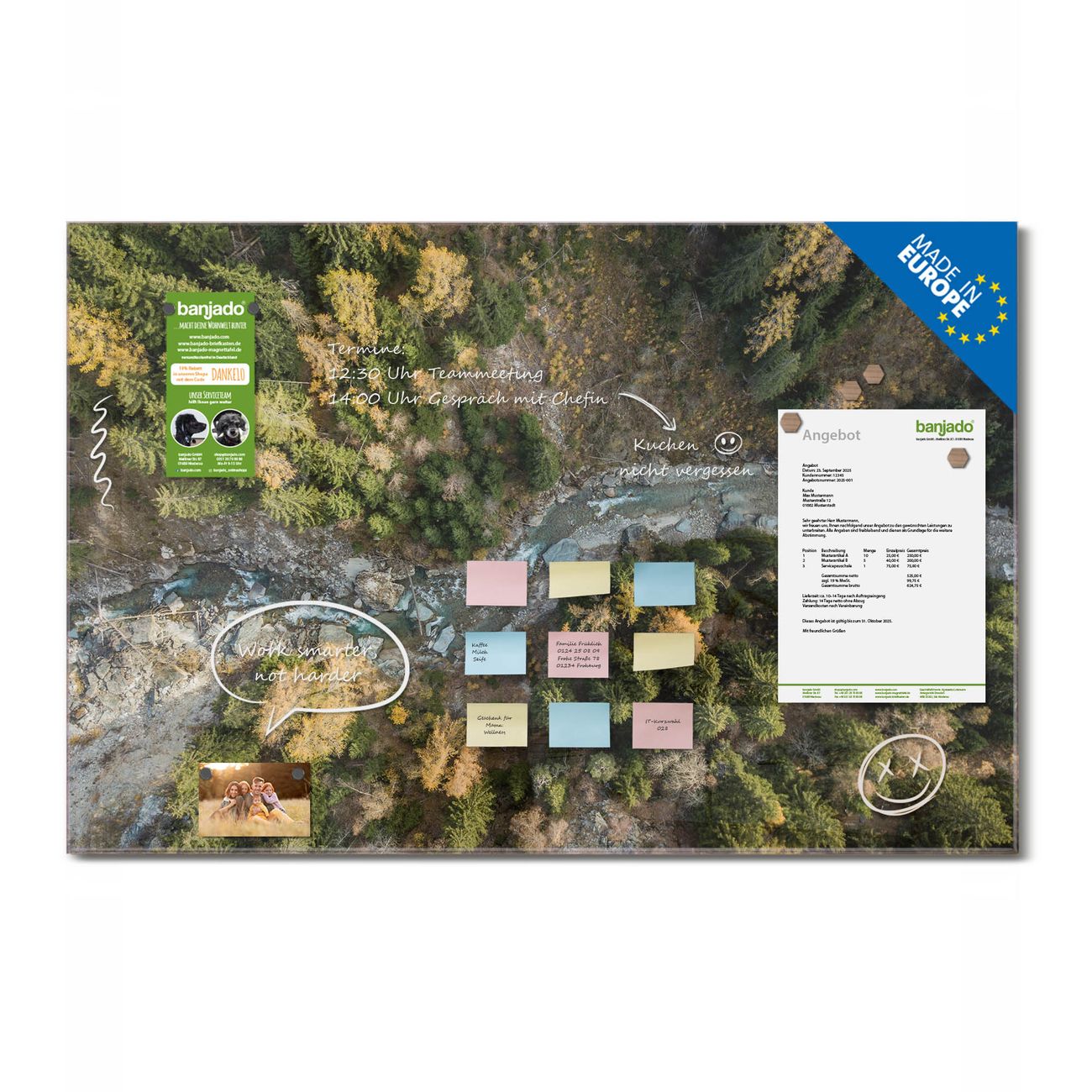 Jede Glas Magnettafel wird in unserer Werkstatt von Hand gefertigt und sorgfältig geprüft. So erhalten Sie ein echtes Qualitätsprodukt, das Funktion und Ästhetik perfekt vereint.