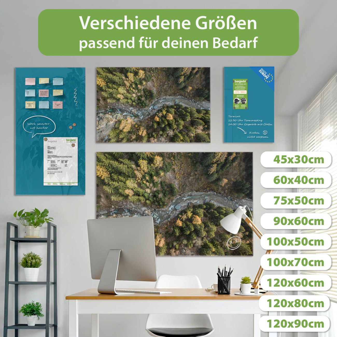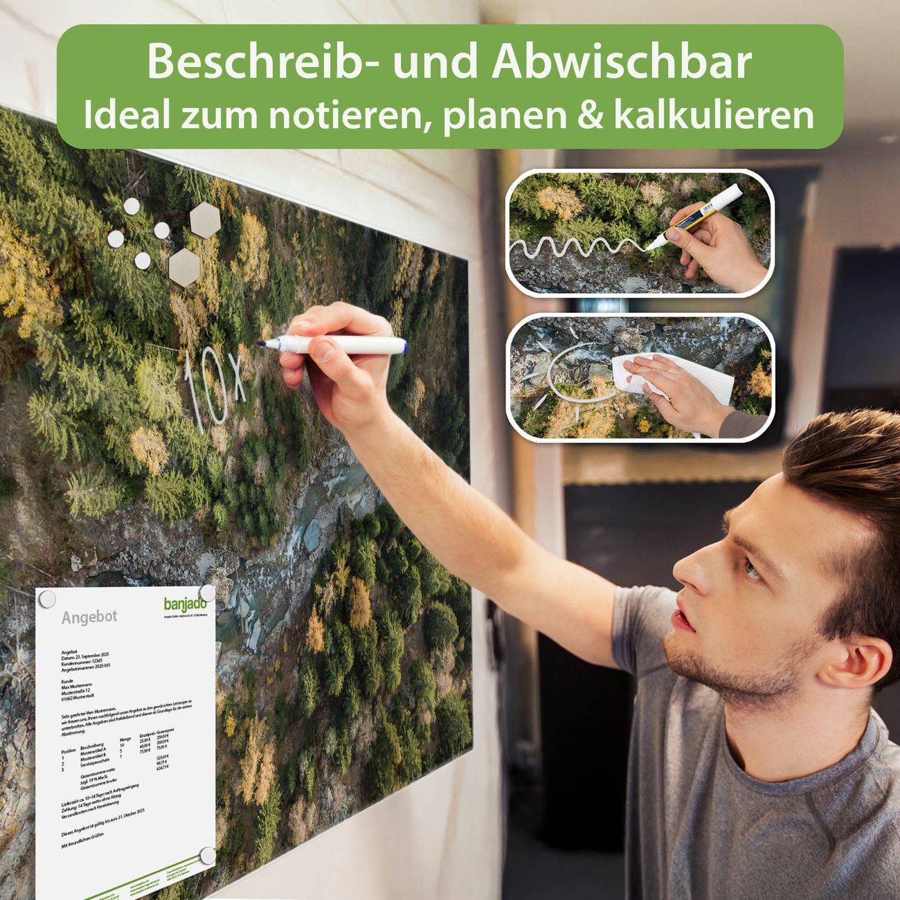 Jede Glas Magnettafel wird in unserer Werkstatt von Hand gefertigt und sorgfältig geprüft. So erhalten Sie ein echtes Qualitätsprodukt, das Funktion und Ästhetik perfekt vereint.?? Warum banjado?