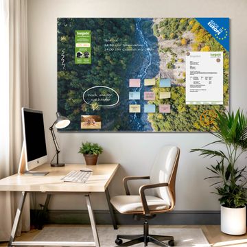 Die banjado Glas Magnettafel mit dem Motiv Motiv Fluss im Tal verbindet Funktionalität mit Stil. Sie ersetzt das Zettelchaos durch klare Strukturen und bringt dabei eine warme, natürliche Atmosphäre in Ihr Zuhause. Ob im Büro, in der Küche oder im Eingangsbereich - dieses Design-Board zieht Blicke an und sorgt für Ordnung mit Charakter.