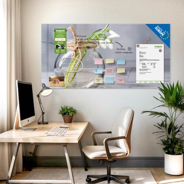 Die banjado Glas Magnettafel mit dem Motiv Motiv Gänseblümchen im Glas verbindet Funktionalität mit Stil. Sie ersetzt das Zettelchaos durch klare Strukturen und bringt dabei eine warme, natürliche Atmosphäre in Ihr Zuhause. Ob im Büro, in der Küche oder im Eingangsbereich - dieses Design-Board zieht Blicke an und sorgt für Ordnung mit Charakter.