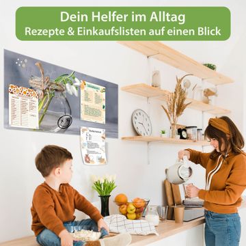 Ein Stück Design, das Ihren Alltag organisiert. Schreiben, heften, inspirieren - alles an einem Ort. Qualität, die man spürt. Montage leicht gemacht. Handwerk mit Herz - veredelt in Sachsen. Einzigartiges Design mit Motiv Motiv Gänseblümchen im Glas Beschreibbare Glasoberfläche, leicht zu reinigen Starke Magnetkraft durch Stahlrückwand Inklusive 4 Neodym-Magneten Flexible Montageoptionen Handveredelt in Sachsen - Qualität, die bleibt