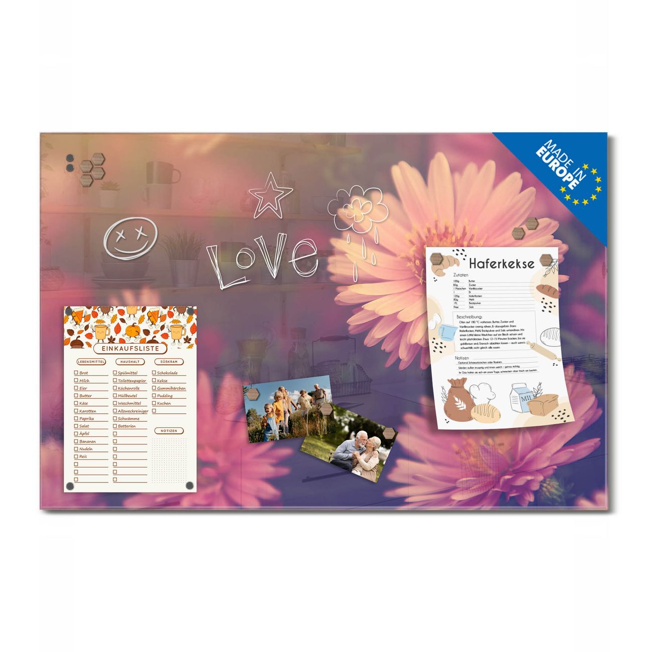 Ein Stück Design, das Ihren Alltag organisiert. Schreiben, heften, inspirieren - alles an einem Ort. Qualität, die man spürt. Montage leicht gemacht. Handwerk mit Herz - veredelt in Sachsen. Einzigartiges Design mit Motiv Motiv Gerbera 2 Beschreibbare Glasoberfläche, leicht zu reinigen Starke Magnetkraft durch Stahlrückwand Inklusive 4 Neodym-Magneten Flexible Montageoptionen Handveredelt in Sachsen - Qualität, die bleibt