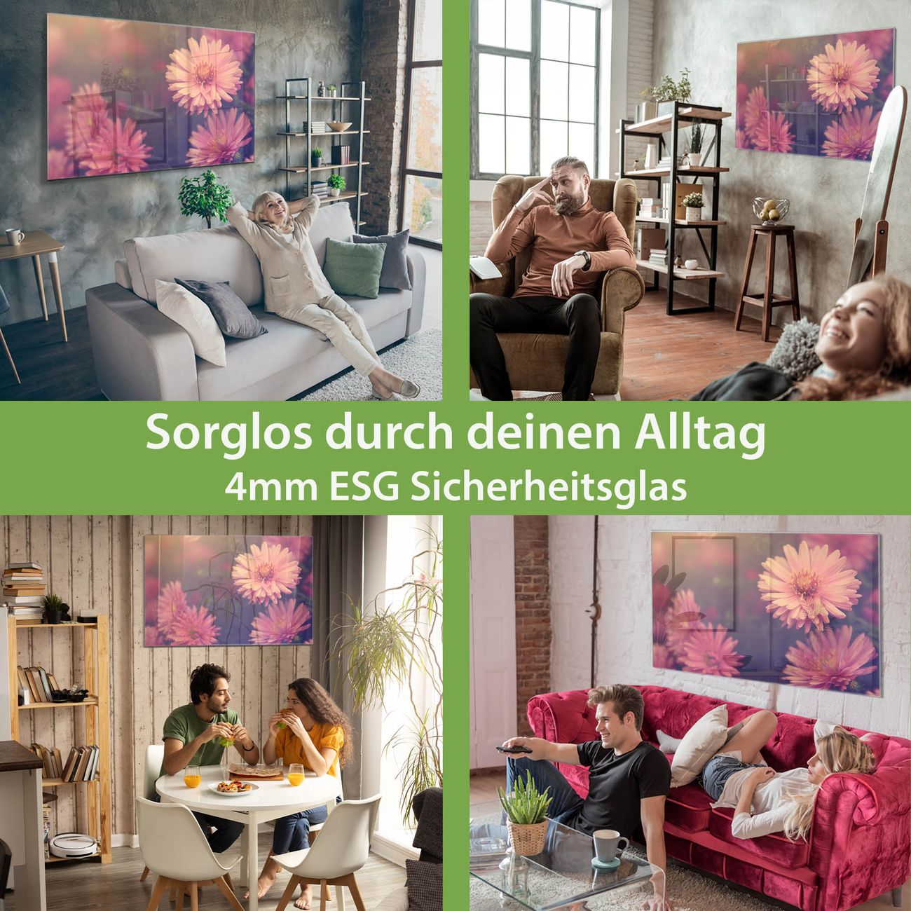 - Material: 4mm Sicherheitsglas mit Metallrückwand