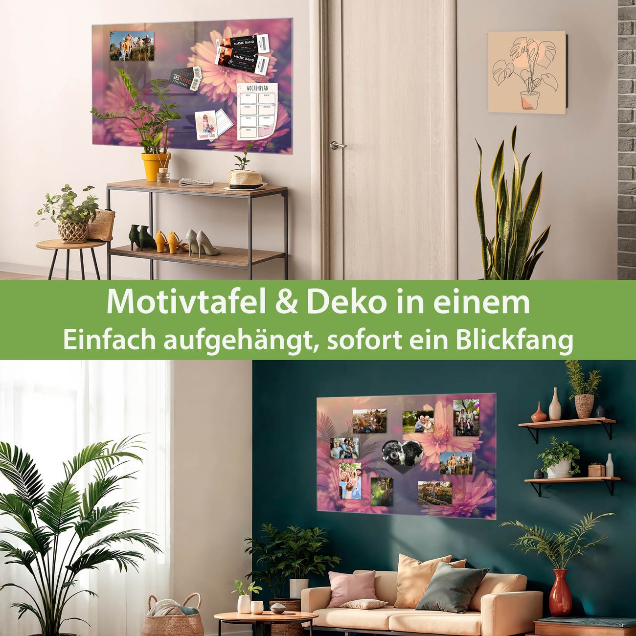 Dank der flachen Bauweise wirkt die Magnetwand fast schwebend an der Wand. Sie können sie mit Montagekleber elegant befestigen oder mit einem passenden Set klassisch verschrauben - beides sorgt für sicheren Halt und eine dezente Optik.