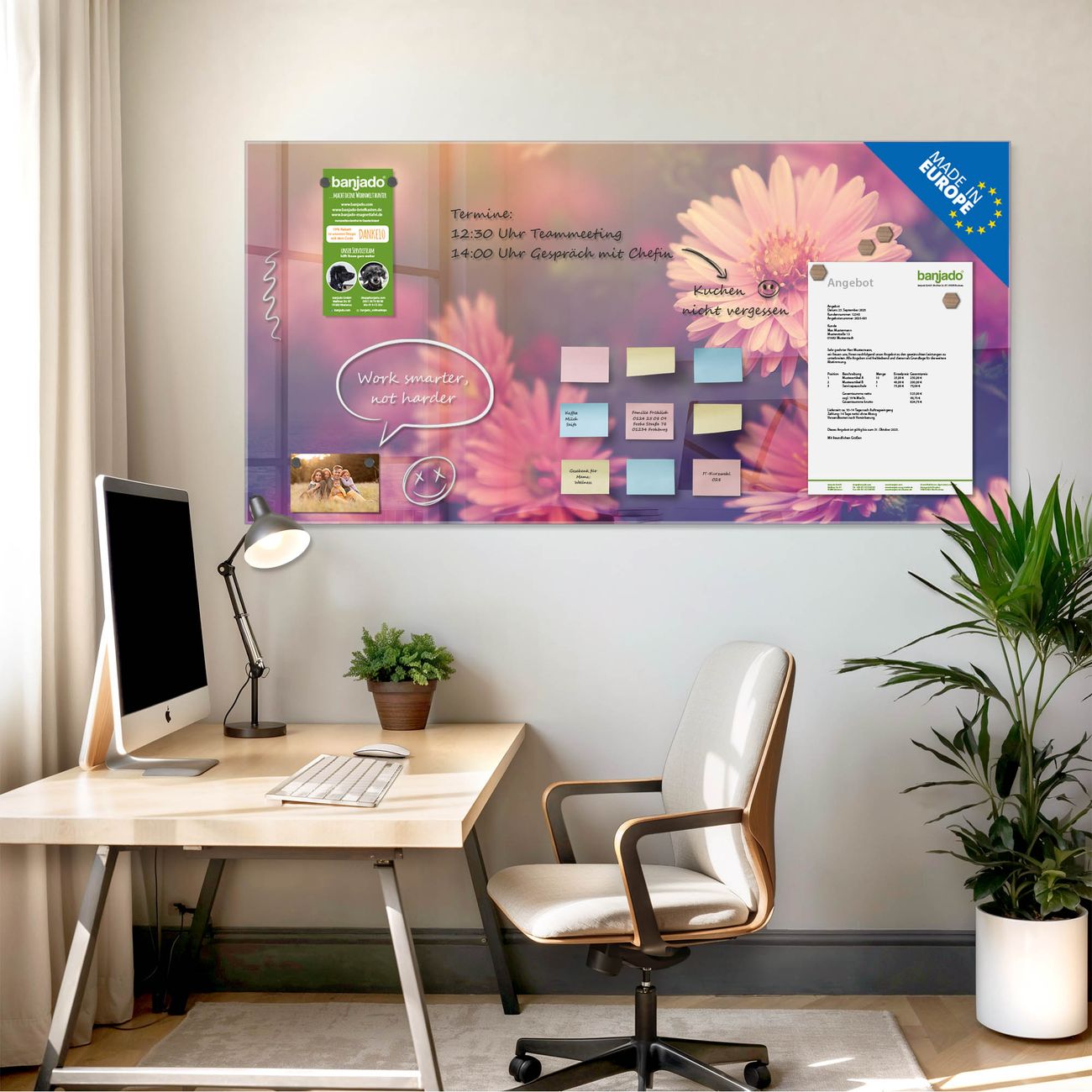 Die banjado Glas Magnettafel mit dem Motiv Motiv Gerbera 2 verbindet Funktionalität mit Stil. Sie ersetzt das Zettelchaos durch klare Strukturen und bringt dabei eine warme, natürliche Atmosphäre in Ihr Zuhause. Ob im Büro, in der Küche oder im Eingangsbereich - dieses Design-Board zieht Blicke an und sorgt für Ordnung mit Charakter.