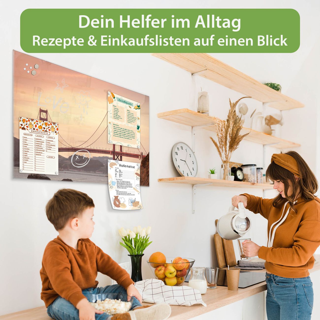 Ein Stück Design, das Ihren Alltag organisiert. Schreiben, heften, inspirieren - alles an einem Ort. Qualität, die man spürt. Montage leicht gemacht. Handwerk mit Herz - veredelt in Sachsen. Einzigartiges Design mit Motiv Motiv Golden Gate Bridge 2 Beschreibbare Glasoberfläche, leicht zu reinigen Starke Magnetkraft durch Stahlrückwand Inklusive 4 Neodym-Magneten Flexible Montageoptionen Handveredelt in Sachsen - Qualität, die bleibt