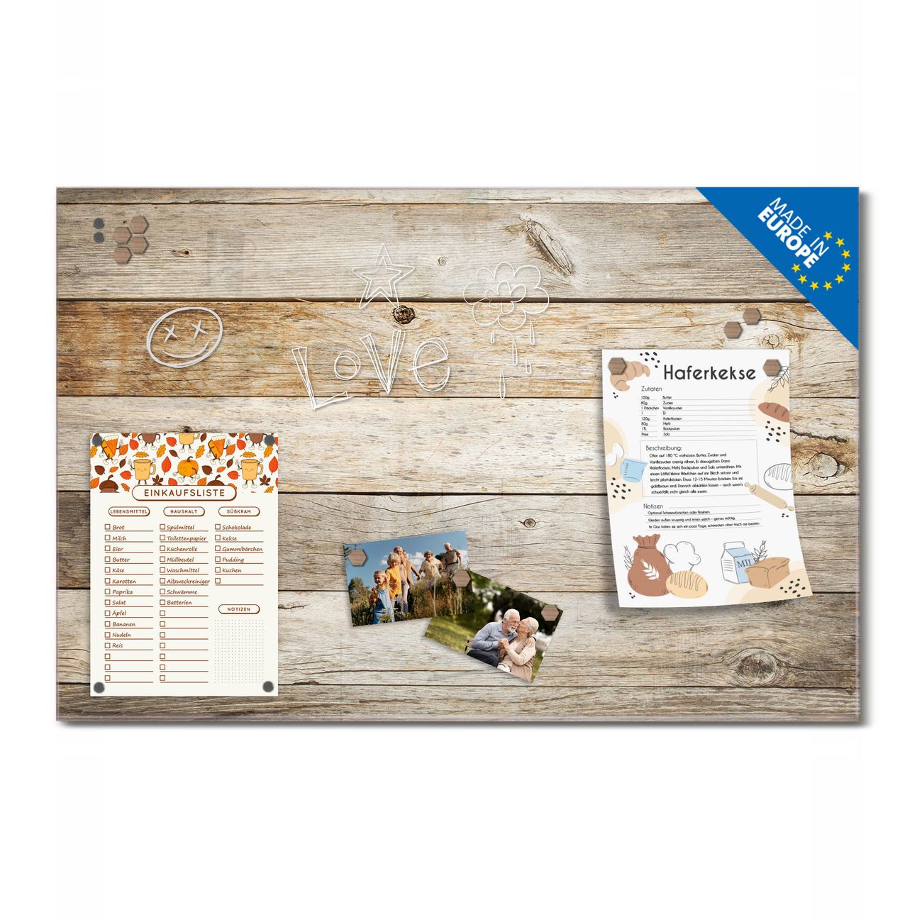 Ein Stück Design, das Ihren Alltag organisiert. Schreiben, heften, inspirieren - alles an einem Ort. Qualität, die man spürt. Montage leicht gemacht. Handwerk mit Herz - veredelt in Sachsen. Einzigartiges Design mit Motiv Motiv Graues Holz Beschreibbare Glasoberfläche, leicht zu reinigen Starke Magnetkraft durch Stahlrückwand Inklusive 4 Neodym-Magneten Flexible Montageoptionen Handveredelt in Sachsen - Qualität, die bleibt