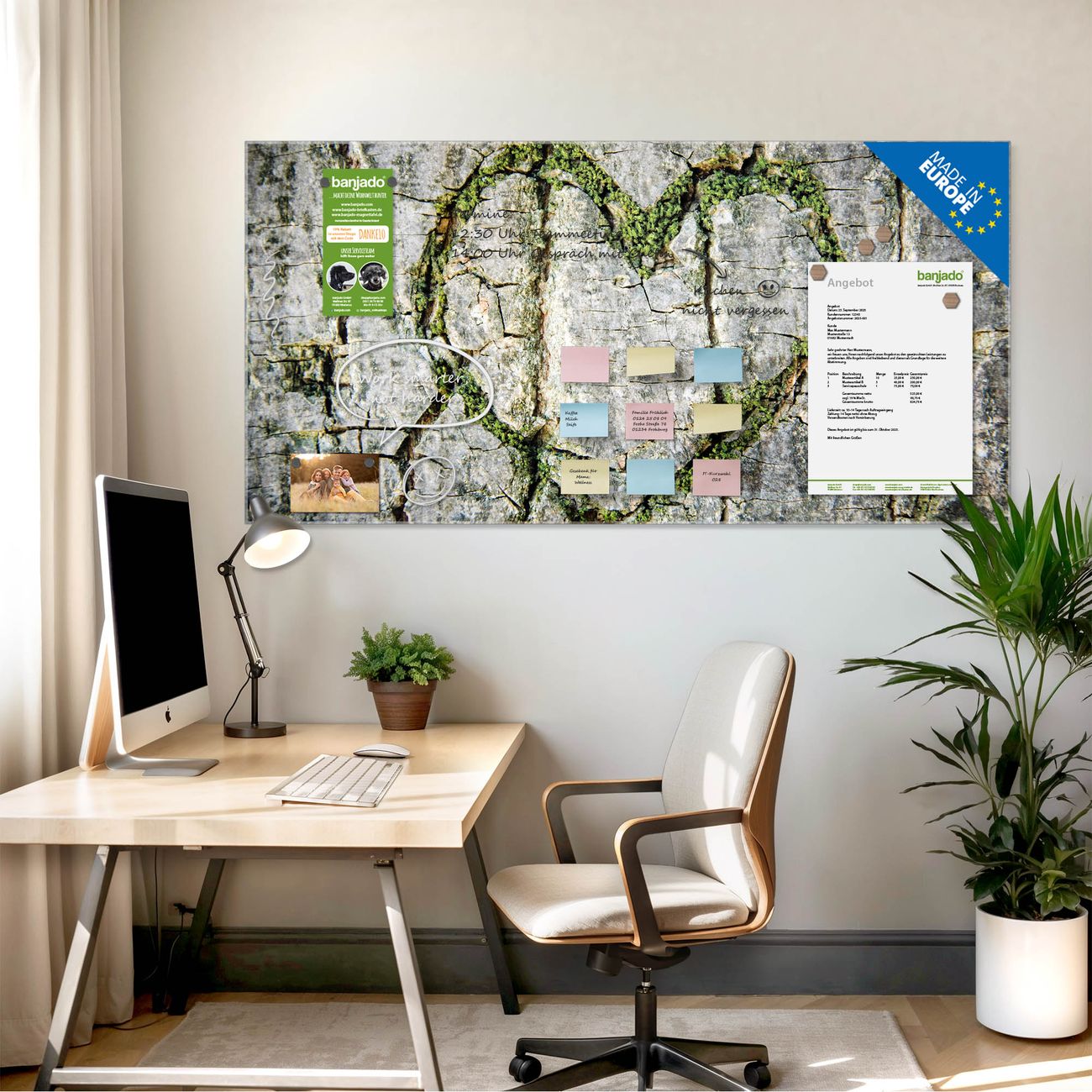 Ein Stück Design, das Ihren Alltag organisiert. Schreiben, heften, inspirieren - alles an einem Ort. Qualität, die man spürt. Montage leicht gemacht. Handwerk mit Herz - veredelt in Sachsen. Einzigartiges Design mit Motiv Motiv Herz Aus Moos Beschreibbare Glasoberfläche, leicht zu reinigen Starke Magnetkraft durch Stahlrückwand Inklusive 4 Neodym-Magneten Flexible Montageoptionen Handveredelt in Sachsen - Qualität, die bleibt