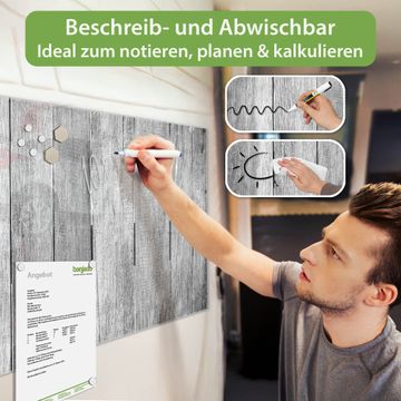 Die banjado Glas Magnettafel mit dem Motiv Motiv Holz Monochrom verbindet Funktionalität mit Stil. Sie ersetzt das Zettelchaos durch klare Strukturen und bringt dabei eine warme, natürliche Atmosphäre in Ihr Zuhause. Ob im Büro, in der Küche oder im Eingangsbereich - dieses Design-Board zieht Blicke an und sorgt für Ordnung mit Charakter.