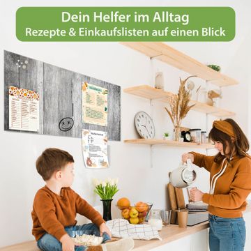 Auf der glatten Glasoberfläche lassen sich Termine, Rezepte oder Notizen ganz einfach mit Kreidestiften festhalten und rückstandslos entfernen. Starke Neodym-Magnete halten Ihre wichtigsten Erinnerungen sicher an Ort und Stelle. So entsteht Ihre ganz persönliche Ideenwand - jeden Tag neu.