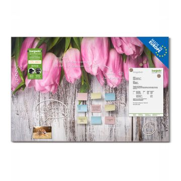 Glas Magnettafel im Querformat Motiv Holz und Tulpen