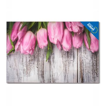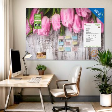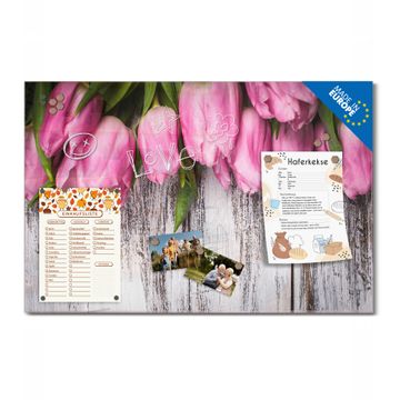 Glas Magnettafel im Querformat Motiv Holz und Tulpen
