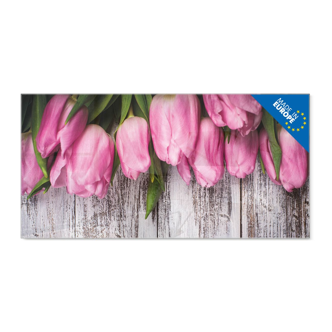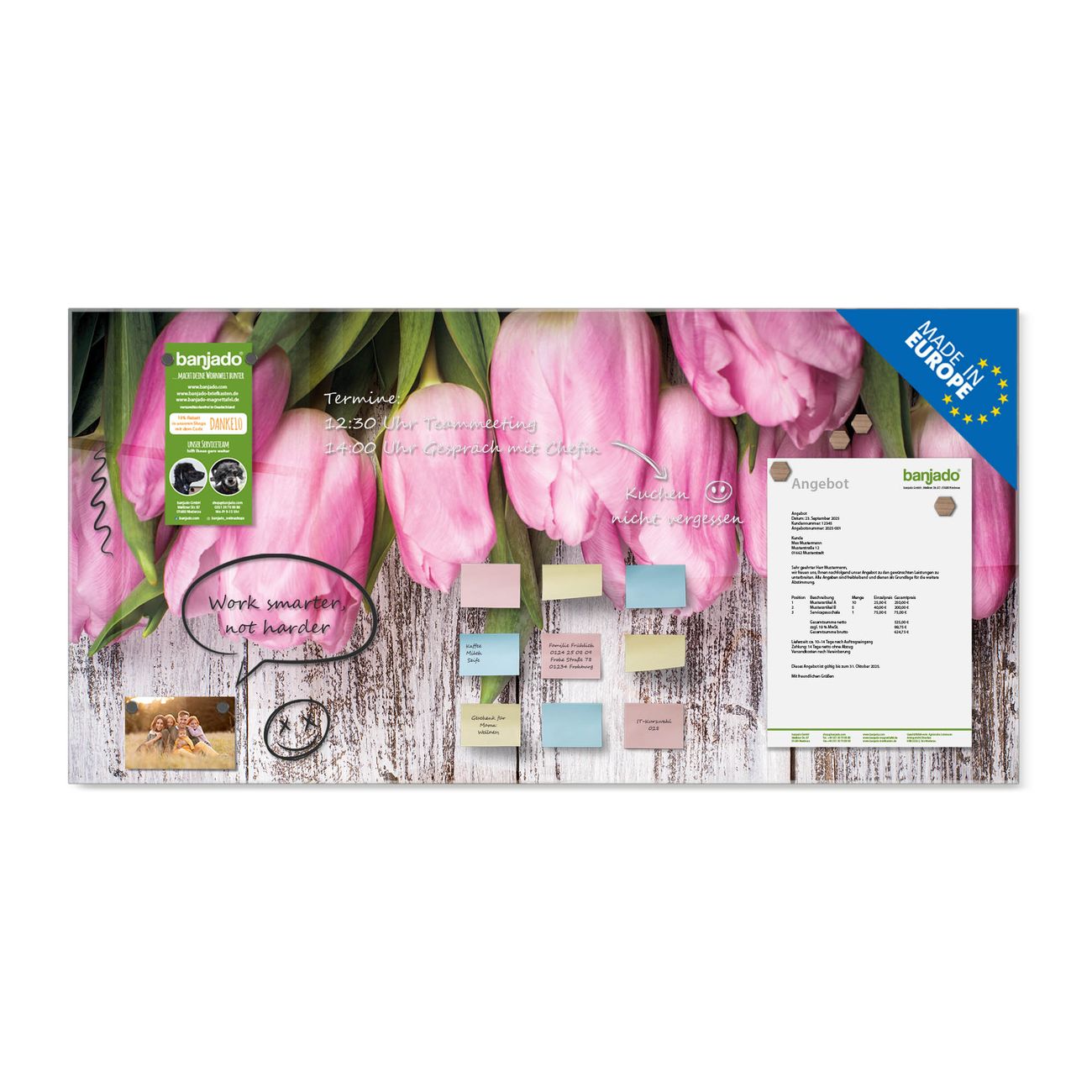 Glas Magnettafel im Querformat Motiv Holz und Tulpen