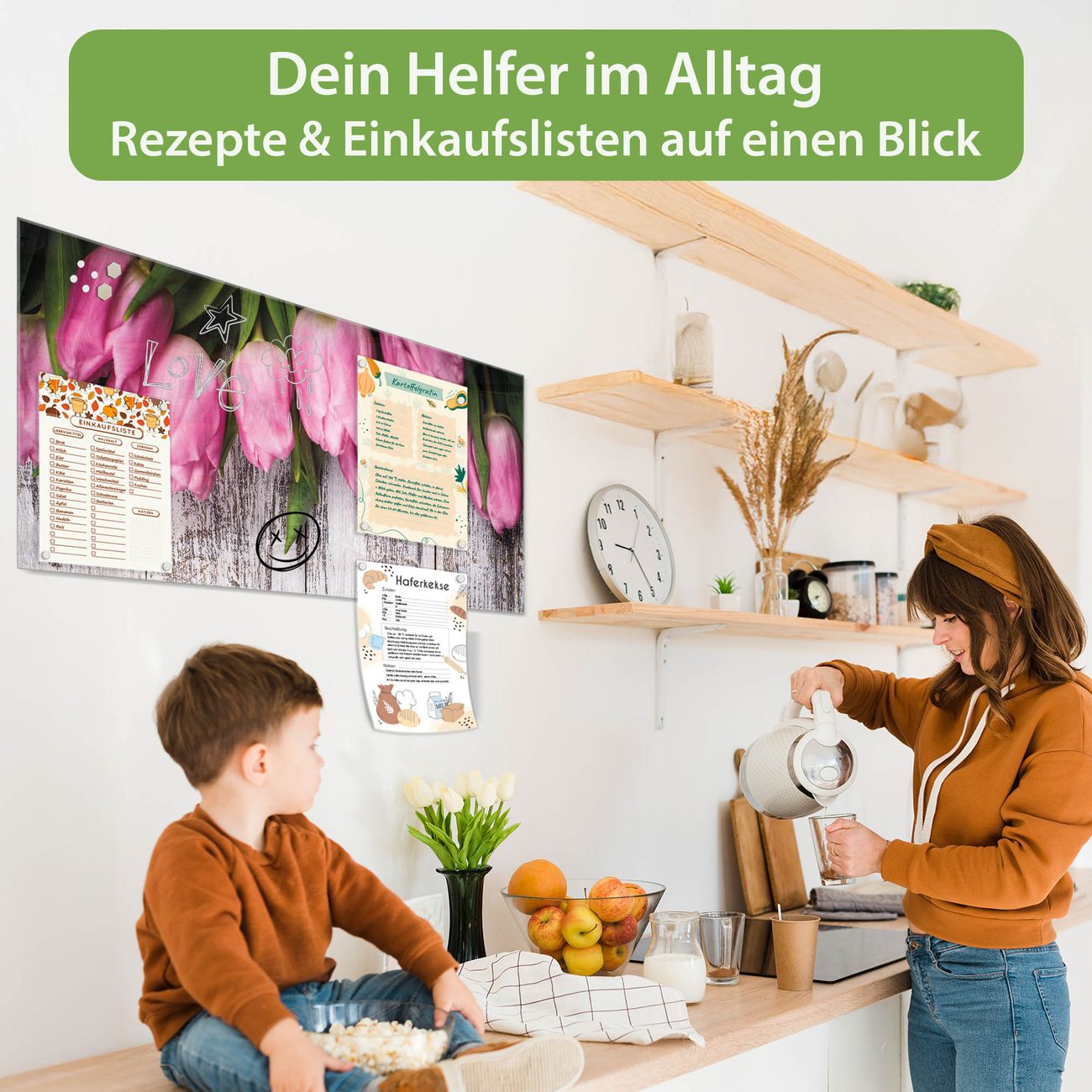 Ein Stück Design, das Ihren Alltag organisiert. Schreiben, heften, inspirieren - alles an einem Ort. Qualität, die man spürt. Montage leicht gemacht. Handwerk mit Herz - veredelt in Sachsen. Einzigartiges Design mit Motiv Motiv Holz und Tulpen Beschreibbare Glasoberfläche, leicht zu reinigen Starke Magnetkraft durch Stahlrückwand Inklusive 4 Neodym-Magneten Flexible Montageoptionen Handveredelt in Sachsen - Qualität, die bleibt