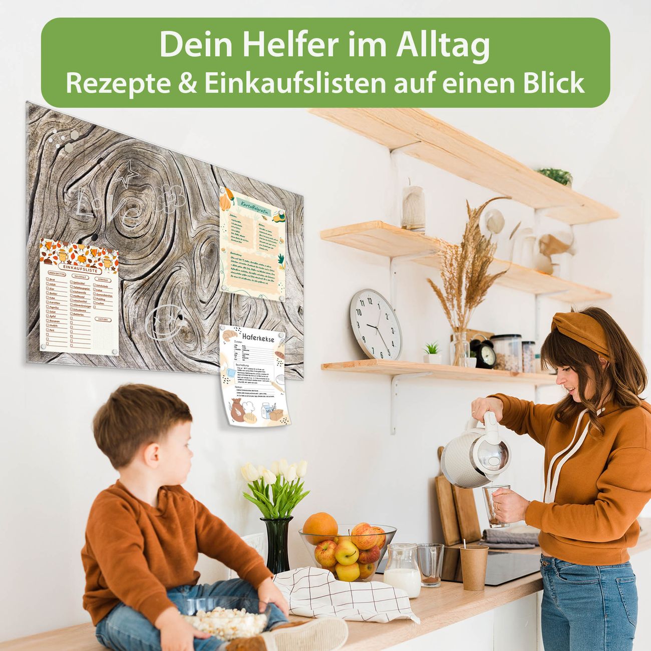 Ein Stück Design, das Ihren Alltag organisiert. Schreiben, heften, inspirieren - alles an einem Ort. Qualität, die man spürt. Montage leicht gemacht. Handwerk mit Herz - veredelt in Sachsen. Einzigartiges Design mit Motiv Motiv Holzwirbel Beschreibbare Glasoberfläche, leicht zu reinigen Starke Magnetkraft durch Stahlrückwand Inklusive 4 Neodym-Magneten Flexible Montageoptionen Handveredelt in Sachsen - Qualität, die bleibt