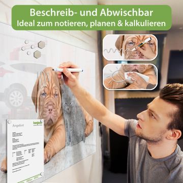 Die banjado Glas Magnettafel mit dem Motiv Motiv Hund und Katze verbindet Funktionalität mit Stil. Sie ersetzt das Zettelchaos durch klare Strukturen und bringt dabei eine warme, natürliche Atmosphäre in Ihr Zuhause. Ob im Büro, in der Küche oder im Eingangsbereich - dieses Design-Board zieht Blicke an und sorgt für Ordnung mit Charakter.