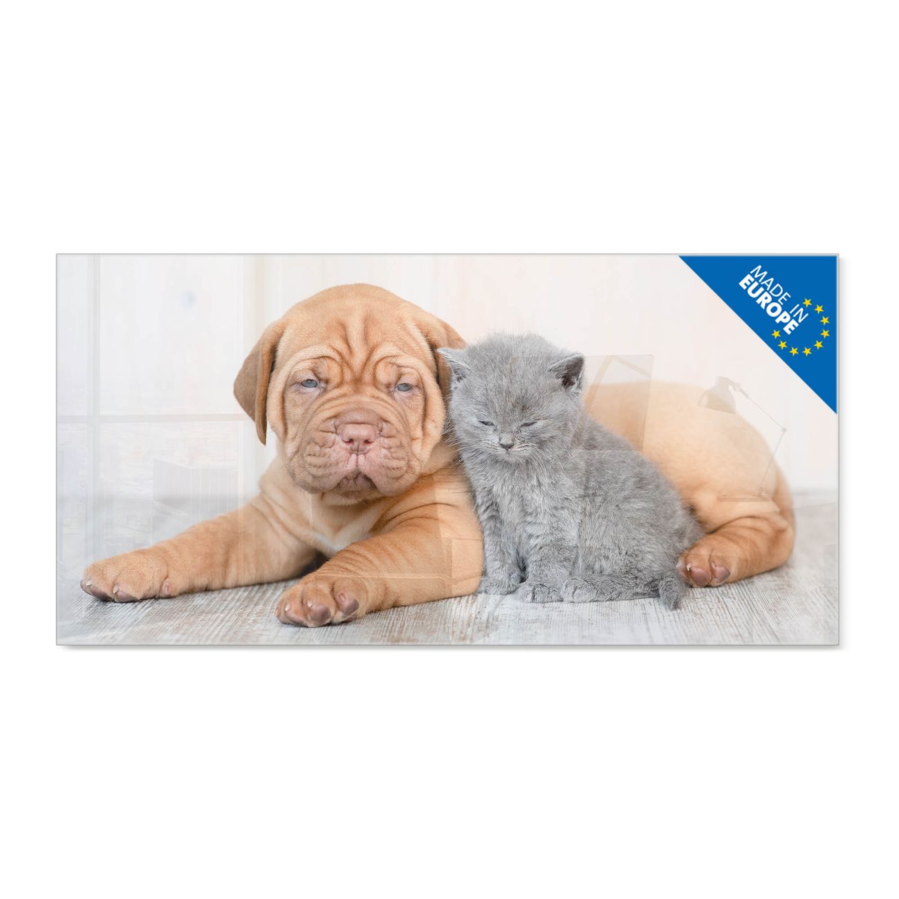 Glas Magnettafel im Querformat Motiv Hund und Katze