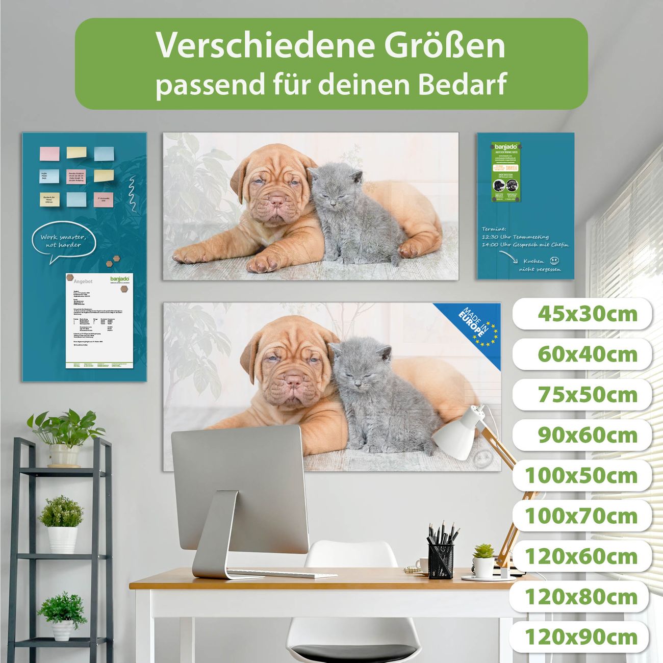 Jede Glas Magnettafel wird in unserer Werkstatt von Hand gefertigt und sorgfältig geprüft. So erhalten Sie ein echtes Qualitätsprodukt, das Funktion und Ästhetik perfekt vereint.?? Warum banjado?