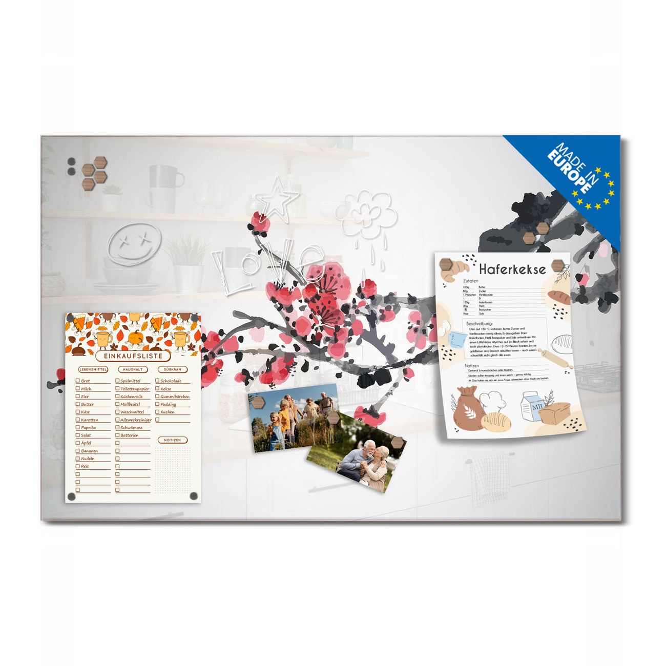 Die banjado Glas Magnettafel mit dem Motiv Motiv Japanische Blüten 2 verbindet Funktionalität mit Stil. Sie ersetzt das Zettelchaos durch klare Strukturen und bringt dabei eine warme, natürliche Atmosphäre in Ihr Zuhause. Ob im Büro, in der Küche oder im Eingangsbereich - dieses Design-Board zieht Blicke an und sorgt für Ordnung mit Charakter.