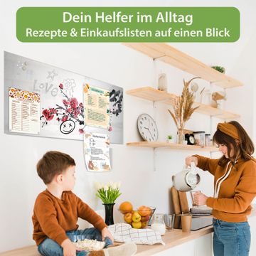 Auf der glatten Glasoberfläche lassen sich Termine, Rezepte oder Notizen ganz einfach mit Kreidestiften festhalten und rückstandslos entfernen. Starke Neodym-Magnete halten Ihre wichtigsten Erinnerungen sicher an Ort und Stelle. So entsteht Ihre ganz persönliche Ideenwand - jeden Tag neu.