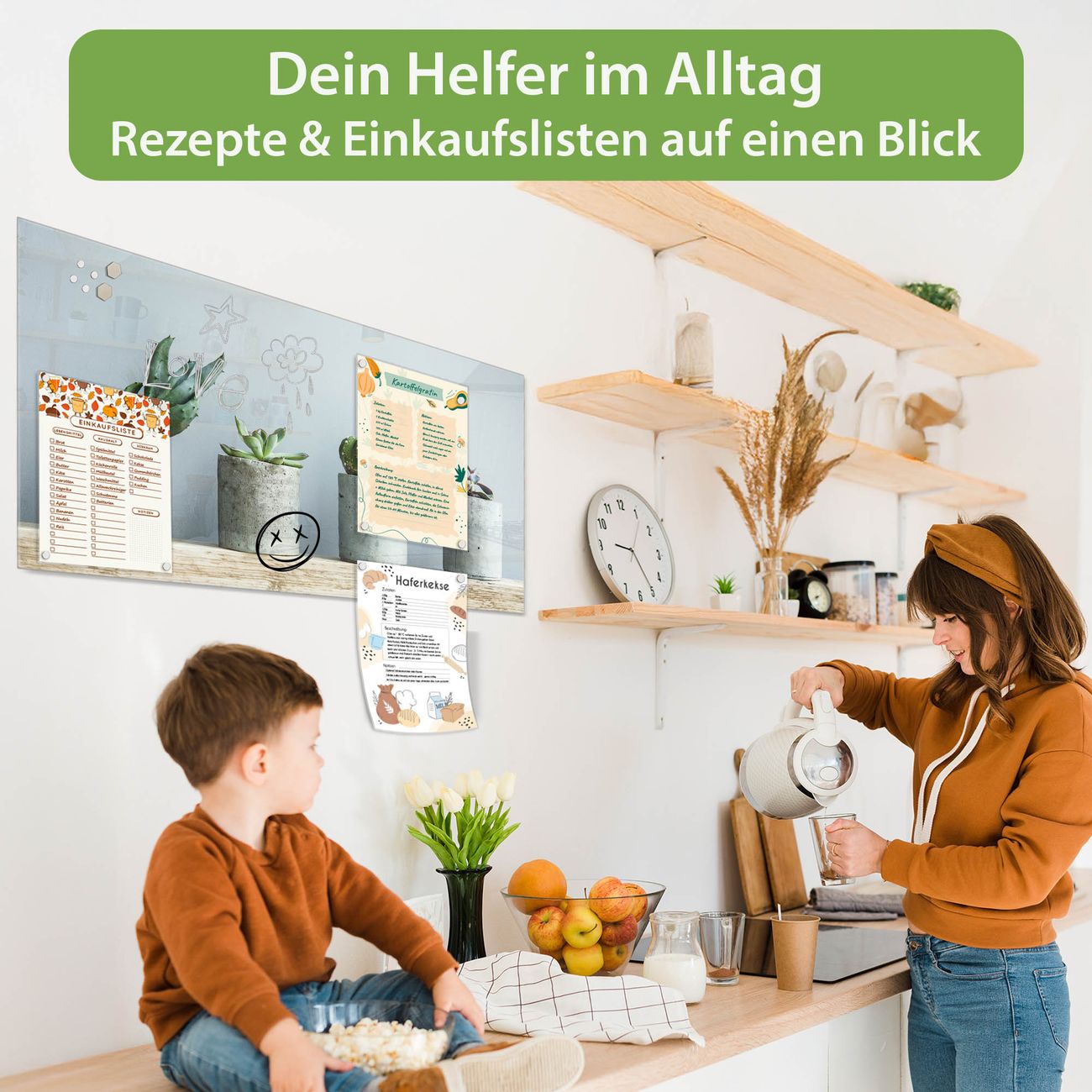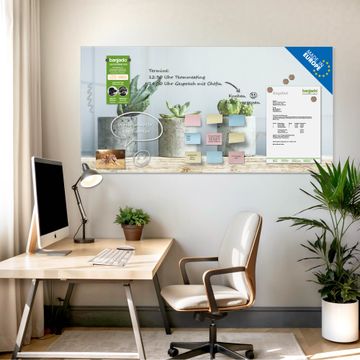 Auf der glatten Glasoberfläche lassen sich Termine, Rezepte oder Notizen ganz einfach mit Kreidestiften festhalten und rückstandslos entfernen. Starke Neodym-Magnete halten Ihre wichtigsten Erinnerungen sicher an Ort und Stelle. So entsteht Ihre ganz persönliche Ideenwand - jeden Tag neu.