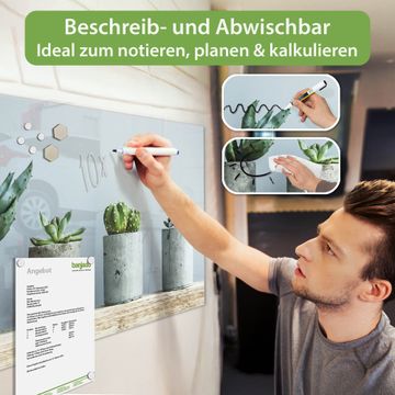 Die banjado Glas Magnettafel mit dem Motiv Motiv Kakteen in Beton verbindet Funktionalität mit Stil. Sie ersetzt das Zettelchaos durch klare Strukturen und bringt dabei eine warme, natürliche Atmosphäre in Ihr Zuhause. Ob im Büro, in der Küche oder im Eingangsbereich - dieses Design-Board zieht Blicke an und sorgt für Ordnung mit Charakter.
