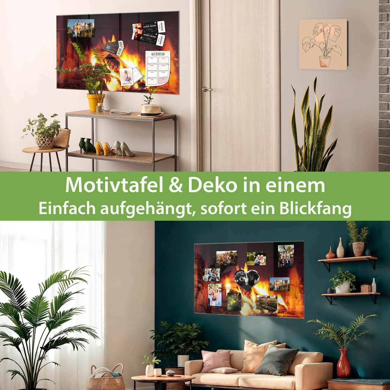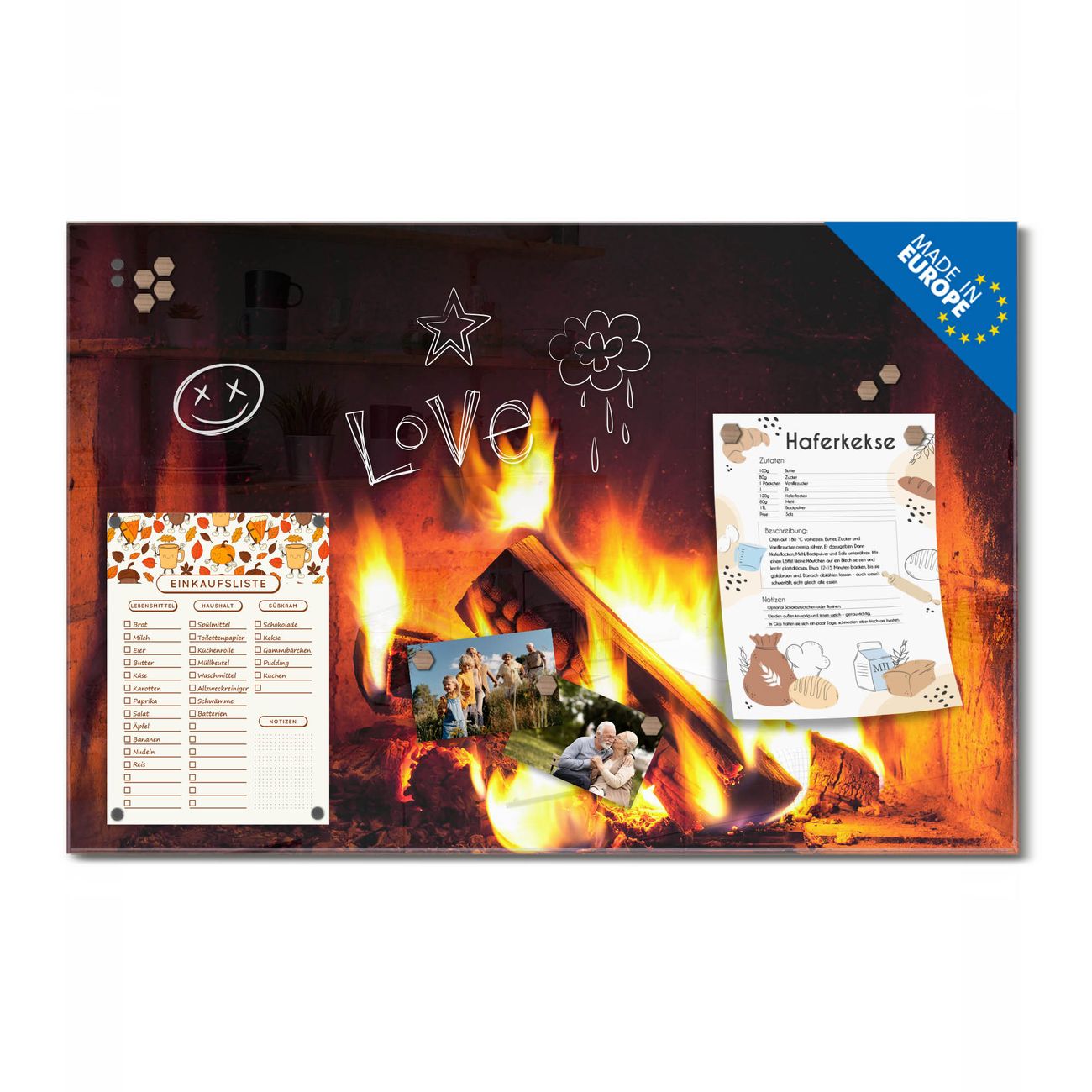 Glas Magnettafel im Querformat Motiv Kaminfeuer