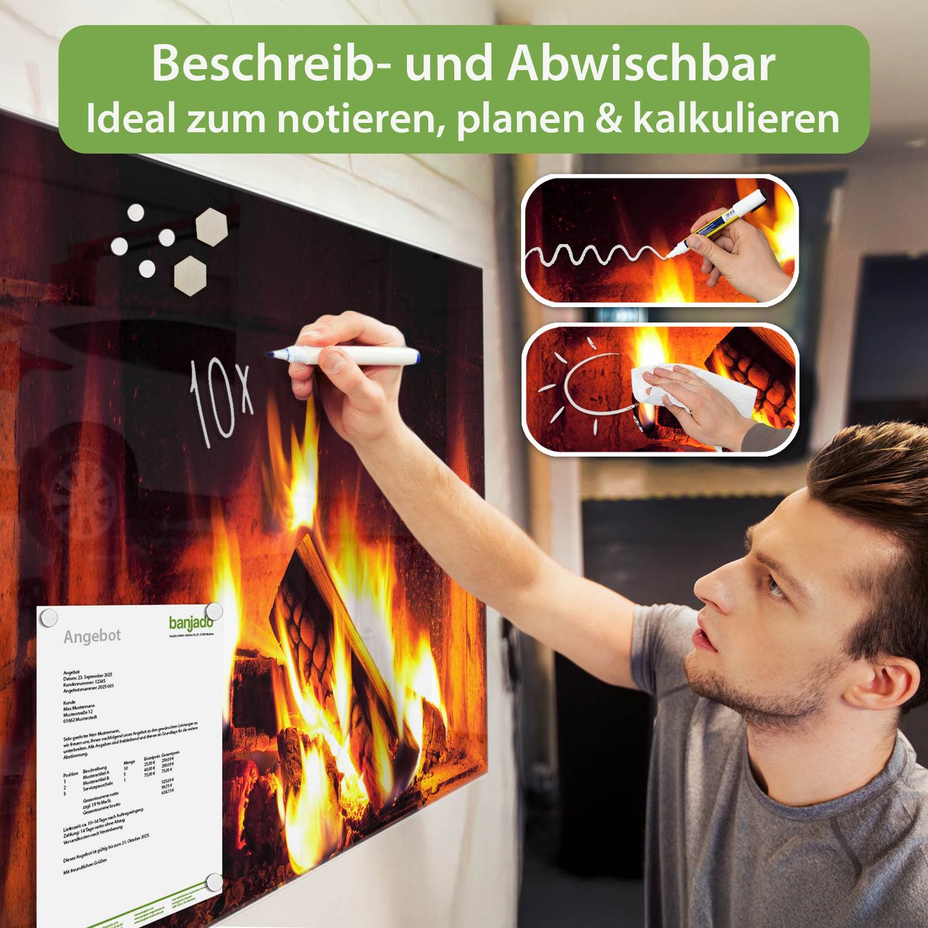 Die banjado Glas Magnettafel mit dem Motiv Motiv Kaminfeuer verbindet Funktionalität mit Stil. Sie ersetzt das Zettelchaos durch klare Strukturen und bringt dabei eine warme, natürliche Atmosphäre in Ihr Zuhause. Ob im Büro, in der Küche oder im Eingangsbereich - dieses Design-Board zieht Blicke an und sorgt für Ordnung mit Charakter.