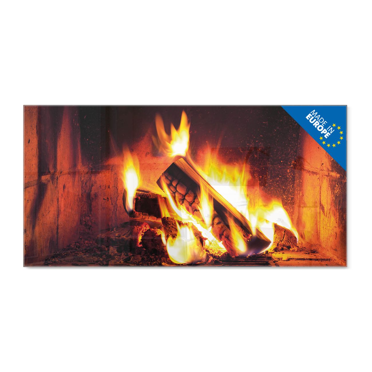 Glas Magnettafel im Querformat Motiv Kaminfeuer