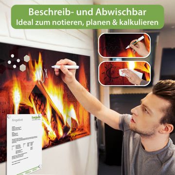 Die banjado Glas Magnettafel mit dem Motiv Motiv Kaminfeuer verbindet Funktionalität mit Stil. Sie ersetzt das Zettelchaos durch klare Strukturen und bringt dabei eine warme, natürliche Atmosphäre in Ihr Zuhause. Ob im Büro, in der Küche oder im Eingangsbereich - dieses Design-Board zieht Blicke an und sorgt für Ordnung mit Charakter.
