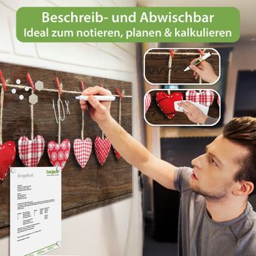 Auf der glatten Glasoberfläche lassen sich Termine, Rezepte oder Notizen ganz einfach mit Kreidestiften festhalten und rückstandslos entfernen. Starke Neodym-Magnete halten Ihre wichtigsten Erinnerungen sicher an Ort und Stelle. So entsteht Ihre ganz persönliche Ideenwand - jeden Tag neu.