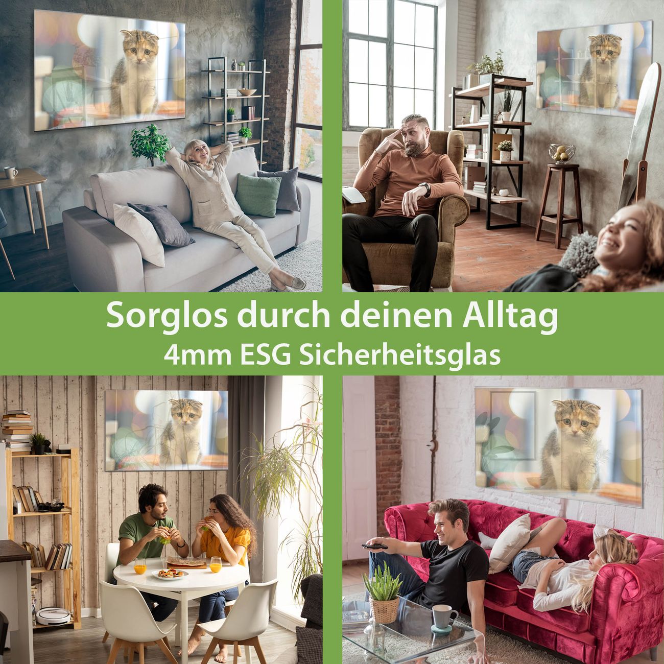 - Material: 4mm Sicherheitsglas mit Metallrückwand
