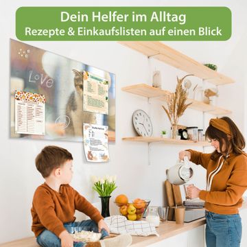 Auf der glatten Glasoberfläche lassen sich Termine, Rezepte oder Notizen ganz einfach mit Kreidestiften festhalten und rückstandslos entfernen. Starke Neodym-Magnete halten Ihre wichtigsten Erinnerungen sicher an Ort und Stelle. So entsteht Ihre ganz persönliche Ideenwand - jeden Tag neu.