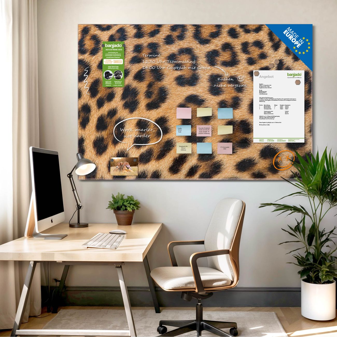 Glas Magnettafel im Querformat Motiv Leopardenfell