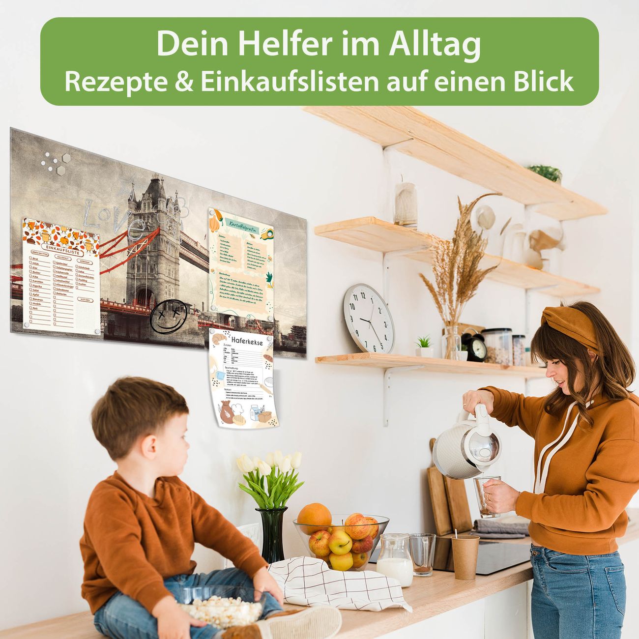 Ein Stück Design, das Ihren Alltag organisiert. Schreiben, heften, inspirieren - alles an einem Ort. Qualität, die man spürt. Montage leicht gemacht. Handwerk mit Herz - veredelt in Sachsen. Einzigartiges Design mit Motiv Motiv London Bridge Beschreibbare Glasoberfläche, leicht zu reinigen Starke Magnetkraft durch Stahlrückwand Inklusive 4 Neodym-Magneten Flexible Montageoptionen Handveredelt in Sachsen - Qualität, die bleibt