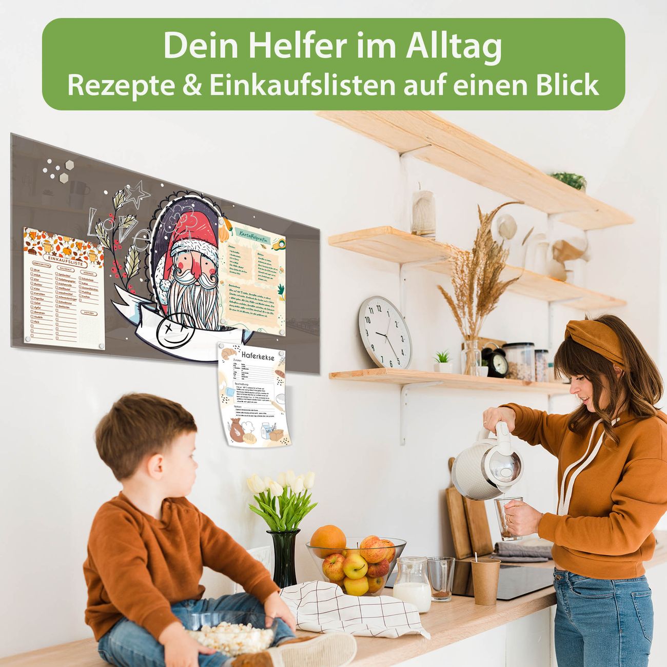 Auf der glatten Glasoberfläche lassen sich Termine, Rezepte oder Notizen ganz einfach mit Kreidestiften festhalten und rückstandslos entfernen. Starke Neodym-Magnete halten Ihre wichtigsten Erinnerungen sicher an Ort und Stelle. So entsteht Ihre ganz persönliche Ideenwand - jeden Tag neu.