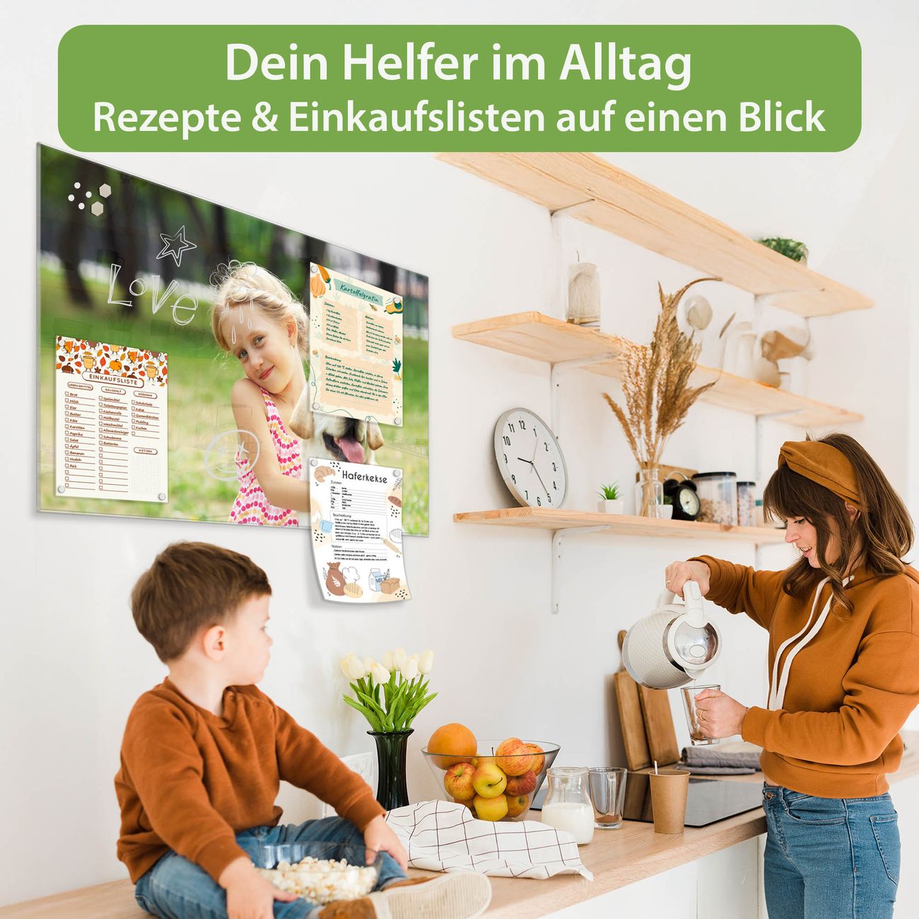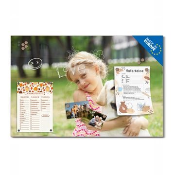 Auf der glatten Glasoberfläche lassen sich Termine, Rezepte oder Notizen ganz einfach mit Kreidestiften festhalten und rückstandslos entfernen. Starke Neodym-Magnete halten Ihre wichtigsten Erinnerungen sicher an Ort und Stelle. So entsteht Ihre ganz persönliche Ideenwand - jeden Tag neu.