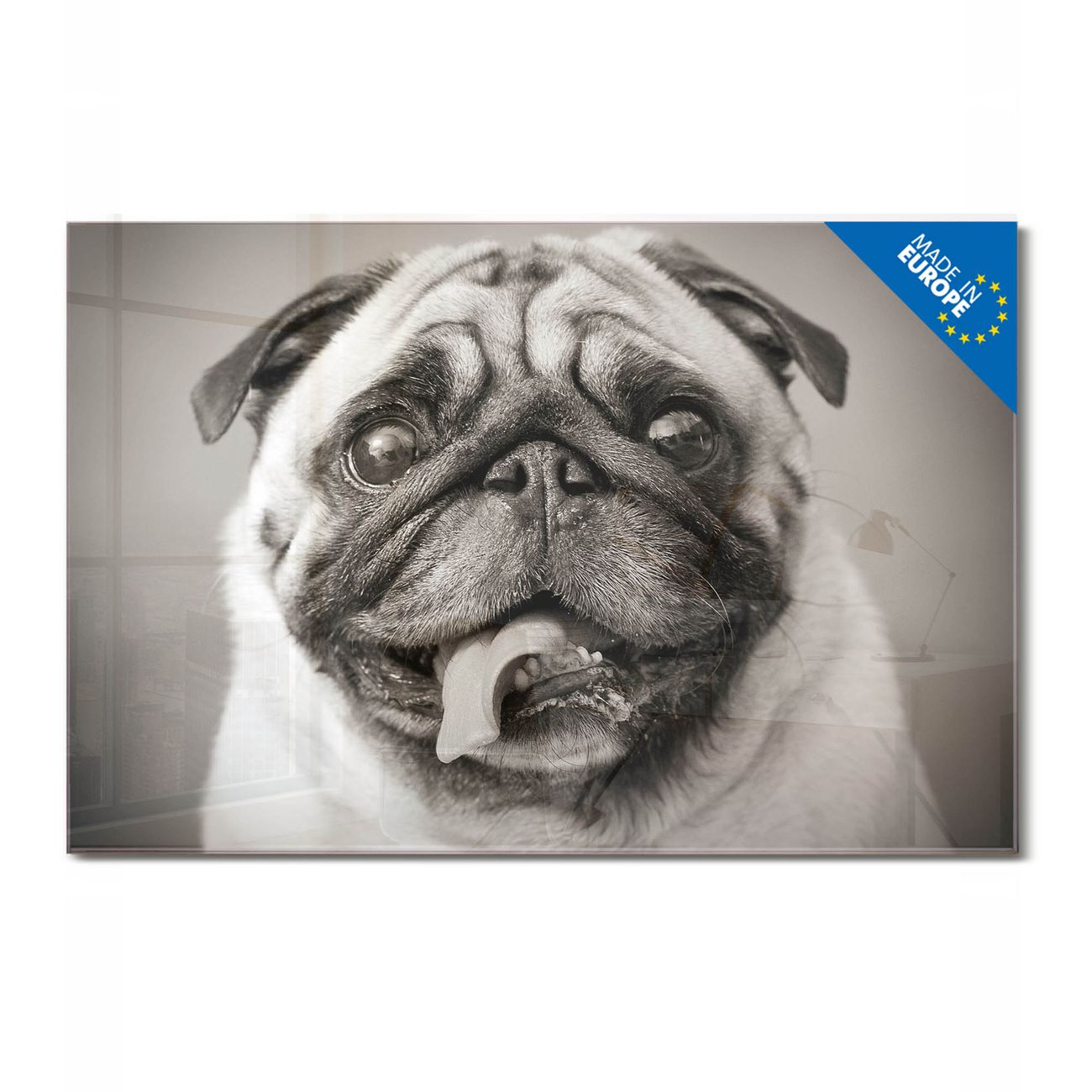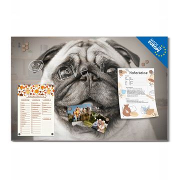 Glas Magnettafel im Querformat Motiv Mops Porträt