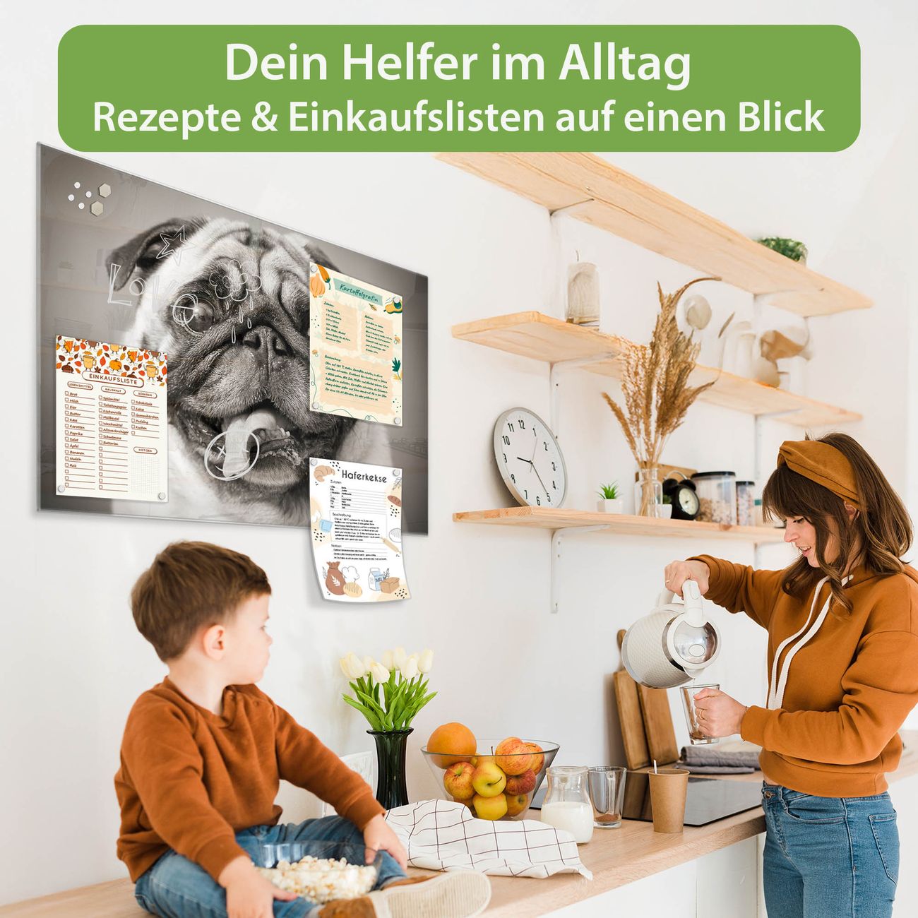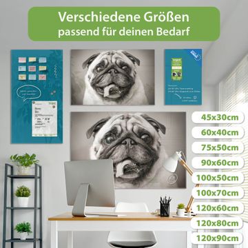 Ein Stück Design, das Ihren Alltag organisiert. Schreiben, heften, inspirieren - alles an einem Ort. Qualität, die man spürt. Montage leicht gemacht. Handwerk mit Herz - veredelt in Sachsen. Einzigartiges Design mit Motiv Motiv Mops Porträt Beschreibbare Glasoberfläche, leicht zu reinigen Starke Magnetkraft durch Stahlrückwand Inklusive 4 Neodym-Magneten Flexible Montageoptionen Handveredelt in Sachsen - Qualität, die bleibt