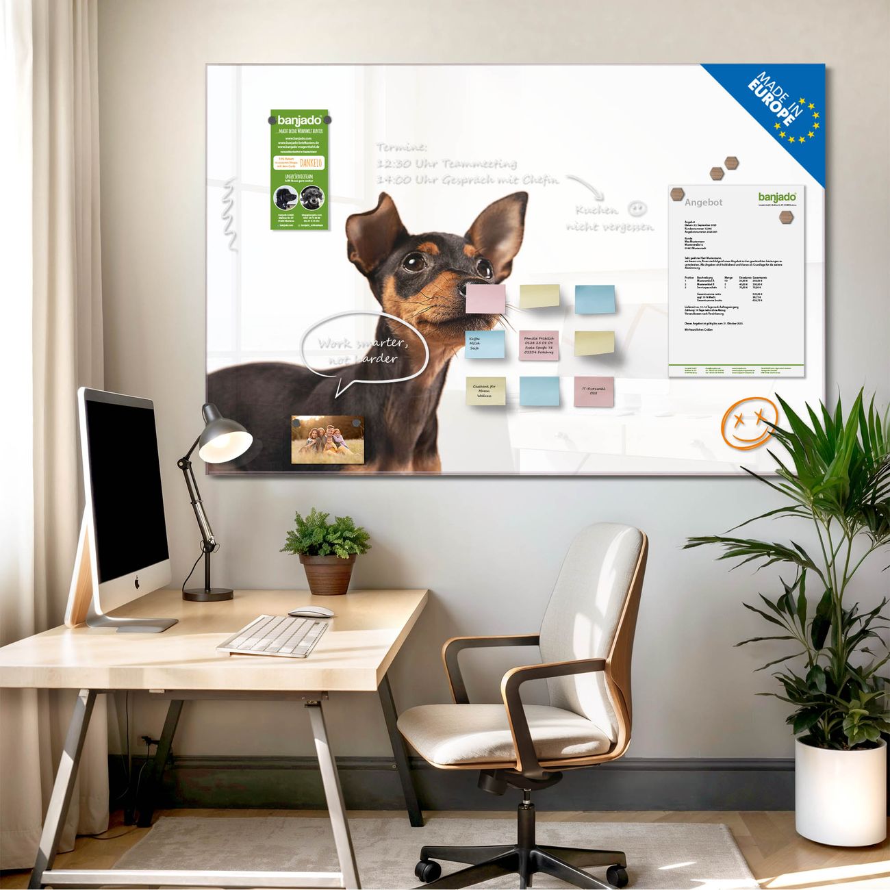 Die banjado Glas Magnettafel mit dem Motiv Motiv Niedlicher Welpe verbindet Funktionalität mit Stil. Sie ersetzt das Zettelchaos durch klare Strukturen und bringt dabei eine warme, natürliche Atmosphäre in Ihr Zuhause. Ob im Büro, in der Küche oder im Eingangsbereich - dieses Design-Board zieht Blicke an und sorgt für Ordnung mit Charakter.